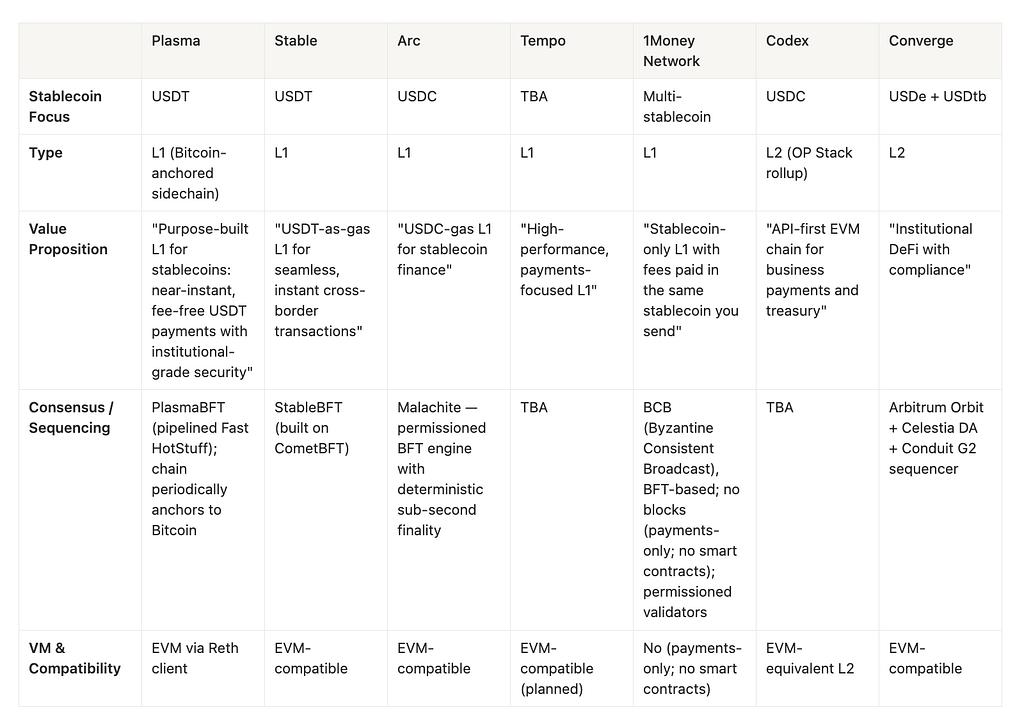 Below is a quick snapshot of standout projects leading the stablecoin / payment-chain category. In this article, I’ll focus primarily on on Plasma, Stable, and Arc — and the issuers, dynamics, and other participants behind this Stablecoin Rail Wars.