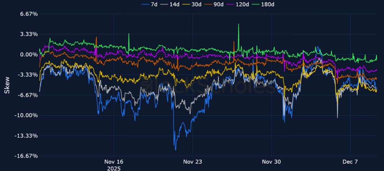BTC 25-Delta Risk Reversal – BTC options markets are not yet pricing in for a ‘Santa rally’ as skew across the term structure is firmly tilted towards puts.