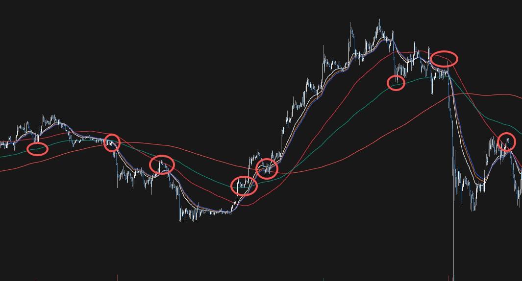 - Short-term swings: Use a set of similar short-term moving averages: EMA 25, 32, 35.