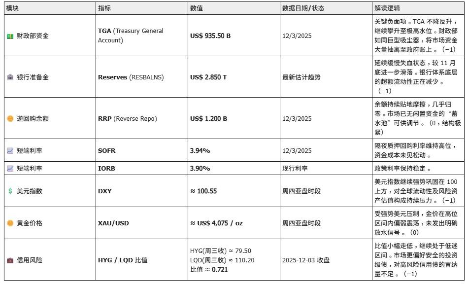Conclusion: Under the dual pressure of a strong dollar and massive liquidity drain from TGA (Treasury General Exchange), the current macroeconomic environment is extremely unfavorable for the valuation expansion of risk assets. The market is currently operating in a state of "liquidity shortage," making it less resistant to any negative news. Caution is advised regarding assets that require high liquidity support.