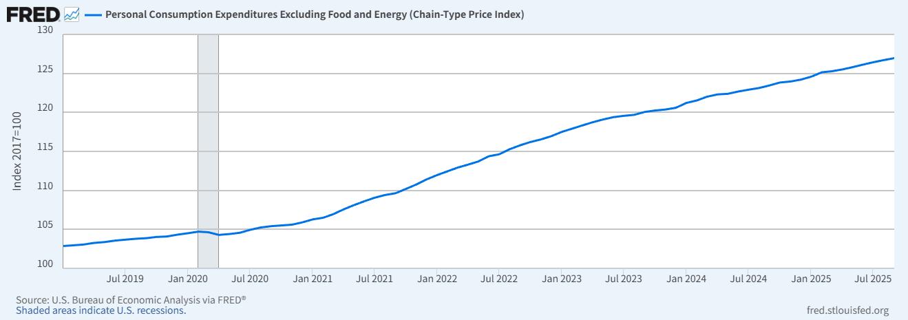 Figure 3: Core PCE Inflation Trend, 2019–2025 (Source: U.S. Bureau of Economic Analysis / FRED)