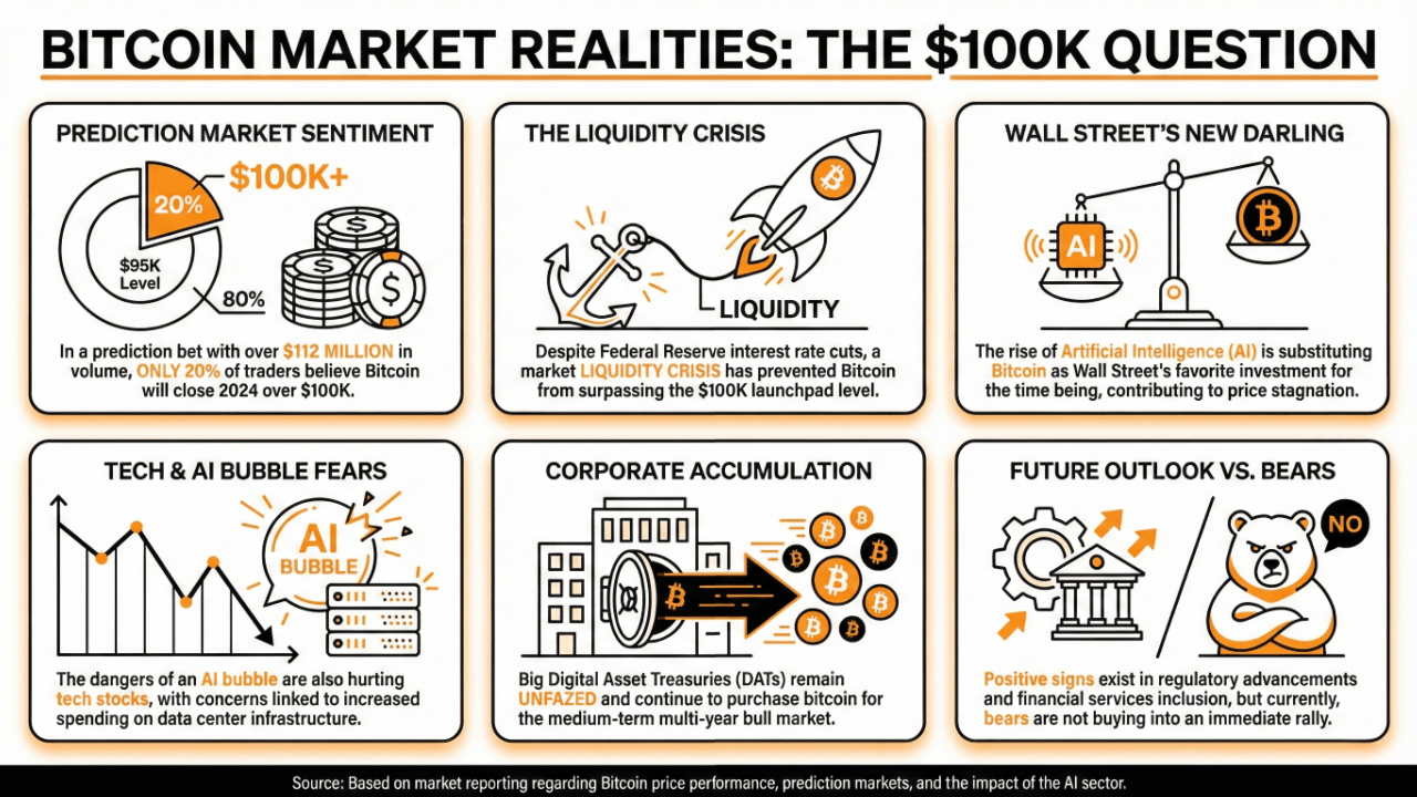 A Bearish Prediction: Polymarket Traders Trust Bitcoin Will Not Reach $100K in 2025