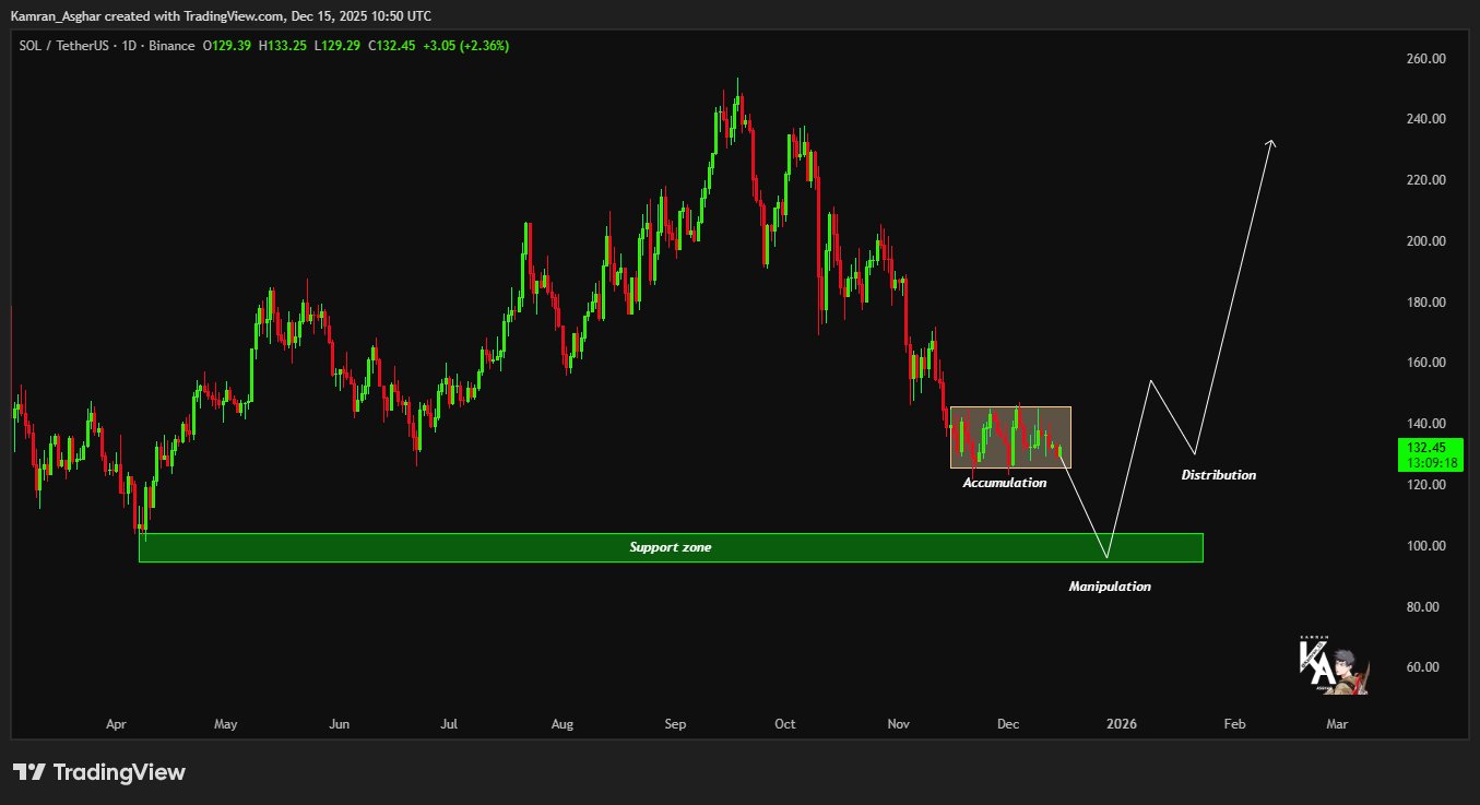 Looking at social media commentary, analyst Kamran Asghar said on X that traders should “not get trapped” because he believes Solana is setting up a liquidity sweep. In his view, SOL could dip below $130 to trigger stop-losses (“grab stops”), then quickly reclaim that level.