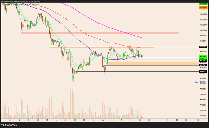 $BTC Not much happened, still the same red resistance above, and the same 89.8k support twitter.com/LSDinmycoffee/stat...