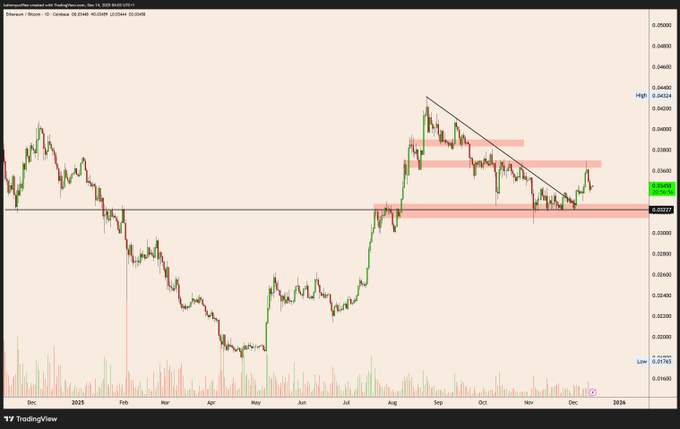 $ETHBTC Ended up being an outperformer this week... straight into the resistance we had on our chart. Let's see on this retest if real strength or if it was a classic "bad omen" ETHBTC pump... twitter.com/LSDinmycoffee/stat...