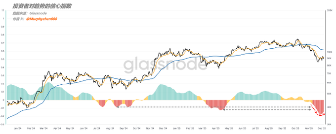 Saw quite a few people asking, “Where’s the Investor Confidence Index?” Since the algorithm for this indicator is heavily smoothed, it moves pretty slowly—it’s a macro trend indicator, so there’s really no need to update it too often. But since everyone’s curious, here’s the latest update. Right now, the index is still in the red zone below the zero line, and this time it’s even lower than the last two cycles. That means this BTC drop has hit market confidence harder than any other dip this cycle. More investors are no longer seeing this as just a mid-bull pullback, but as the start of a new bear phase. (See Chart 1) Personally, regardless of whether that’s true or not, the most “no-brainer” strategy for regular investors is just DCA—something like the AHR999 approach. For example, when the first red signal appeared, BTC was at $105,000. If you bought your first batch then and kept buying every $10k drop, your average entry would be around $95,000. If you laddered in with a positive pyramid strategy, your cost basis could be as low as $90,000. Even if you don’t use any other hedging (like long vol through options), your BTC spot account drawdown would be pretty limited—and you’d likely outperform 90% of the market. Just keep DCA’ing until the index climbs back above zero, and your P&L curve won’t look bad at all. The hard part is strict risk management and sticking to your plan. Sounds easy, but most people can’t do it. Because the Confidence Index can stay away from zero for a long time—it took 2.5 months in 2024, and this time might last even longer (we’re only one month in so far). Now we’re seeing a slight upturn in the index, but that doesn’t mean BTC has bottomed yet. It just means things are heading in a better direction. Still, always be ready for volatility, manage your risk, and keep enough ammo so you don’t get forced out too early. ---------------------------------------------- Post sponsored by @Bitget| Bitget VIP: lower fees, bigger perks twitter.com/Murphychen888/stat...