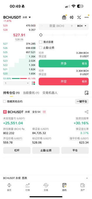 I've added all the 20,000 units of profit to my position. My target price is now 481, and the liquidation price is 623. Wish me luck! twitter.com/wukong2021/status/...