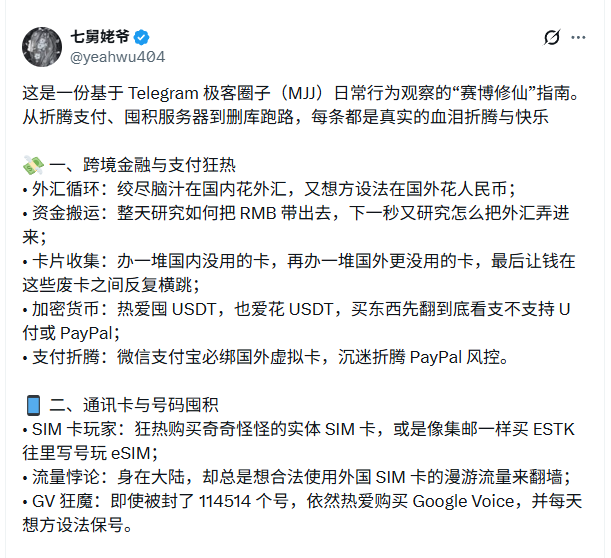 - Payment hassle: WeChat and Alipay are always linked to foreign virtual cards, and PayPal is linked to various mainland debit and credit cards. ㅤ Learning from small telecom operators about SIM, eSIM, and virtual numbers 😂